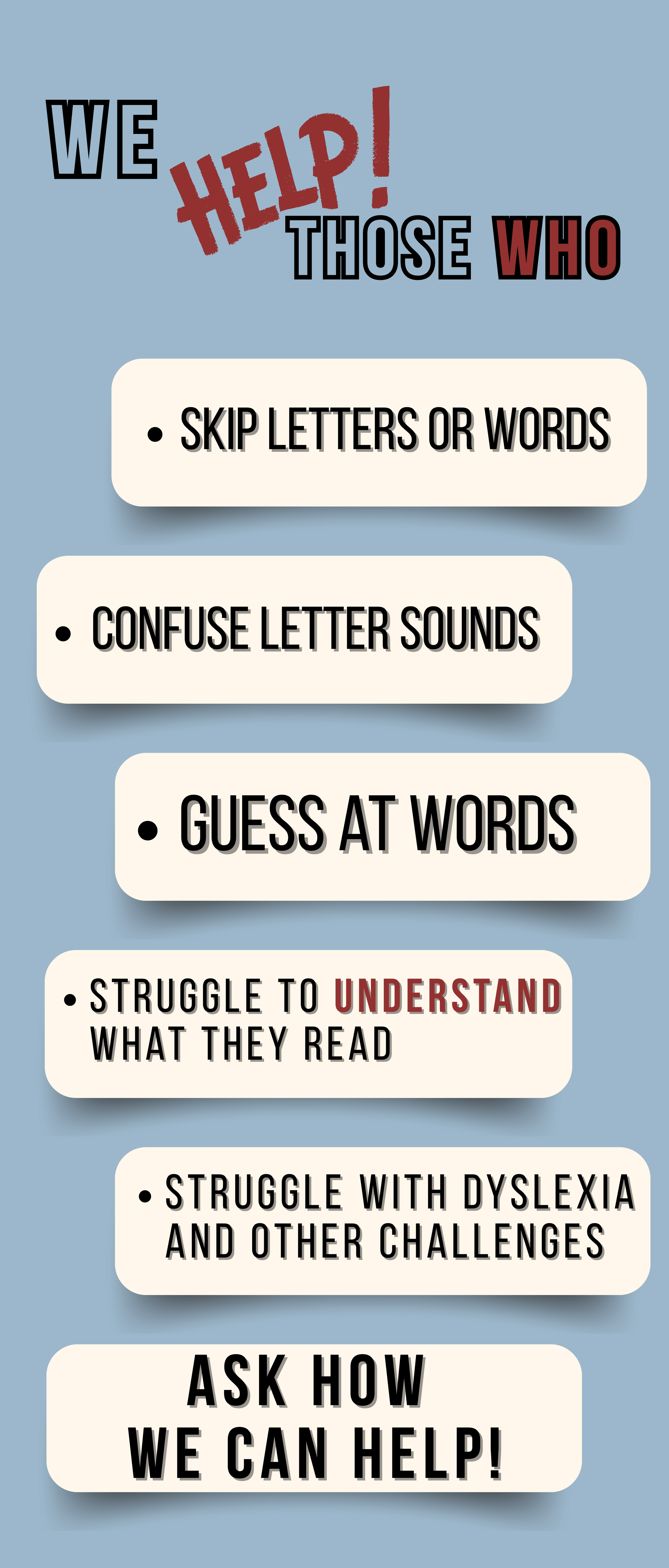Around two-thirds of 12th graders cannot read proficiently and most resources stop helping children around 3rd grade. We aim to fix that.